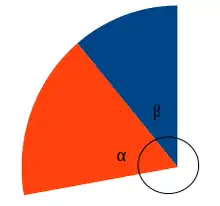 Son los obtenidos mediante la suma o diferencia de ángulos. En la figura se representan dos sectores circulares contiguos, cada uno con su ángulo, denominados α y β respectivamente; la unión de los dos sectores tendrá por ángulo la composición, en este caso la suma, α + β, de los ángulos de los sectores que unimos.