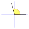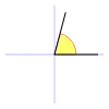 En un sistema de coordenadas cartesiano bidimensional, un ángulo se define típicamente por sus dos lados, con su vértice en el origen. El lado inicial está en el eje x positivo, mientras que el otro lado o lado terminal está definido por la medida del lado inicial en radianes, grados o vueltas. Con ángulos positivos que representan rotaciones hacia el eje y positivo y ángulos negativos que representan rotaciones hacia el eje y negativo. Cuando las coordenadas cartesianas están representadas por la posición estándar, definida por el eje x hacia la derecha y el eje y hacia arriba, las rotaciones positivas son en sentido antihorario y las rotaciones negativas son en sentido horario.