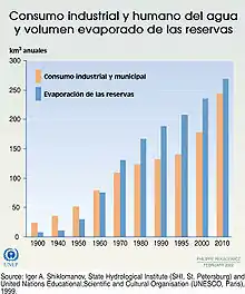 - Shiklomanov, Igor A. (1999). «Tendencias en el consumo humano e industrial de agua, y su relación el ritmo de la evaporación de las reservas». UN Environment. Archivado desde el original el 4 de enero de 2012.
