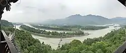 Parte del agua que cae sobre la tierra como lluvia o proveniente del deshielo se filtra en la tierra o se evapora, pero alrededor de un tercio se desplaza por la superficie siguiendo la pendiente.[77] El agua de escorrentía suele formar cuencas, donde los cursos de agua más pequeños suelen unirse formando ríos. El desplazamiento constante de masas de agua sobre diferentes terrenos geológicos es un factor muy importante en la conformación del relieve. En las partes del curso con pendiente alta, los ríos arrastrar minerales durante su desplazamiento, que depositan en las partes bajas del curso. Por tanto, los ríos cumplen un papel muy importante en el enriquecimiento del suelo. Parte de las aguas de esos ríos se desvían para su aprovechamiento agrícola. Los ríos desembocan en el mar formando estuarios o deltas.[78] Las aguas subterráneas, por su parte, pueden aflorar a la superficie como manantiales o descender a acuíferos profundos, donde pueden permanecer milenios.[77]