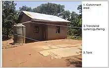 - Aprovechar el agua de lluvia es posible utilizando sistemas de captación, como en el árbol del viajero, cuyas hojas acumulan agua potable. Para recolectar agua de lluvia en casa, se puede recolectar del techo utilizando un contenedor como una cisterna o tinaco. El agua captada debe ser filtrada y clorada para ser potable y cumplir con controles de calidad. Antes de almacenar el agua, se separan las hojas y semillas con una malla, se filtra el agua con carbón activado y se añade cloro al recipiente. El filtro de carbón activado debe cumplir con normas locales, abarcar toda el área de paso del agua y tener 10 cm de grosor. Se recomienda cambiarlo cada 2800-3750 litros de agua filtrada. Es importante evitar captar agua de lluvia en láminas de asbesto, ya que el carbón activado no retiene dicho compuesto cancerígeno, así que el agua sigue siendo no apta para consumo o baño.[34]