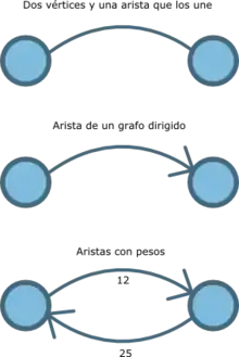 Algebraicamente, dado un grafo y dos vértices , una arista se define, para un grafo no dirigido, como el conjunto , en tanto que para un grafo dirigido, como el par ordenado . Note que .[2]