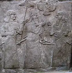 A Tiglatpileser III le sucedió su hijo Salmanasar V que reinó cinco años débilmente, pero en estos momentos de crisis apareció un personaje de origen desconocido que usurpó el poder y se hizo llamar Sargón II. Con él se fundó la dinastía de los sargónidas. Trasladó su séquito a una nueva ciudad llamada Dur Sharrukin (Fuerte de Sargón, al norte de Nínive). Las ciudades se embellecieron con magníficos monumentos a costa de los cuantiosos tributos cobrados a los pueblos sometidos.[83] Sargón aplicó la política de deportaciones comenzada por Tiglatpileser III en la que fueron incluidos los jefes israelitas que representaban las Diez Tribus. Las campañas de este rey fueron fructuosas consiguiendo que Asiria se extendiera desde la frontera de Egipto a los montes Zagros y desde los montes Tauro al golfo Pérsico. Todo el territorio de la Media Luna Fértil fue incorporado a Asiria. Los pueblos de Asia Menor, la isla de Chipre y el pequeño reino de Judá pagaban tributo.[84]