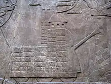 Tan importante como el uso el hierro fue para los asirios el cambio de táctica de guerra y asedio de ciudades. Hasta el momento era muy difícil tomar una ciudad por asalto y por eso el sistema preferido era aislar e impedir la admisión de alimentos lo cual suponía una larguísima espera y el consiguiente debilitamiento por ambas partes. El nuevo sistema de ataque consistió en la invención de nuevas máquinas pesadas y con ruedas, blindadas y protegidas y equipadas con arietes. Los soldados aprendieron su manejo y eran capaces de abrir grandes fisuras en las murallas dando paso a la entrada del resto del ejército. Los sitiados caían así en una trampa de la que no podían salir victoriosos, añadiendo además la imposibilidad de huir. A continuación se desataba el pillaje, el abuso, el saqueo y todo tipo de crueldades. Con Asurnasirpal II (883-859 a. C.), hijo del anterior se emplearon estos métodos de guerra con gran éxito.[75] Este rey reconstruyó la ciudad de Kalhu y la nombró su capital, en sustitución de la antigua Aššur. La arqueología llevada a cabo en este lugar ha dado un verdadero tesoro en inscripciones halladas en los monumentos, sobre el devenir de este rey. Se sabe de él entre otras cosas que sus campañas bélicas fueron numerosas, devastadoras y brutales.[76][64]