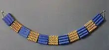 - Ibid., p. 123-126. No se sabe si estos motivos eran textiles multicolores bordados o partes metálicas cosidas en la tela como ha propuesto (en inglés) A. L. Oppenheim «The Golden Garments of the Gods», en Journal of Near Eastern Studies 8/3, 1949, p. 172-193.