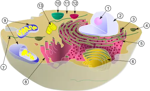 - Orgánulo: Una organela u orgánulo es una estructura subcelular que lleva a cabo uno o más trabajos específicos en la célula, al igual que un órgano lo hace en el cuerpo.