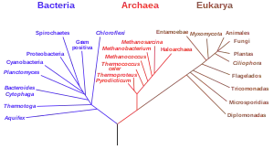 - Woese, C. R.; Kandler, O. y Wheelis, M. L. (1990). «Towards a natural system of organisms: proposal for the domains Archaea, Bacteria, and Eucarya». Proc. Nati. Acad. Sci. USA 87 (12): 4576-4579. doi:10.1073/pnas.87.12.4576. Archivado desde el original el 19 de octubre de 2011. Consultado el 20 de junio de 2022.