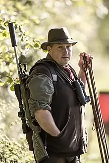 La caza o cacería (también, actividad cinegética) es la actividad o acción en la que se captura o abate un animal en estado salvaje o silvestre, tras su pisteo y persecución.[1] Según el filósofo español José Ortega y Gasset, «la caza es todo lo que se hace antes y después de la muerte del animal. La muerte es imprescindible para que exista la cacería».[2] Las especies cazadas recreativamente se conocen generalmente como animales de caza y suelen ser mamíferos y aves. Una persona que participa en una cacería es un cazador; un espacio natural destinado a la caza se denomina coto de caza ; un cazador experimentado que ayuda a organizar una cacería y/o administrar la reserva de caza se conoce como guardabosque. El tiempo durante el cual está prohibido cazar o pescar en un determinado lugar o una determinada especie se le denomina veda .
