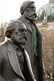 El más conocido de estos movimientos fue el socialismo científico de los pensadores alemanes Karl Marx y Friedrich Engels, bajo la cual la organización Liga de los justos sería rebautizada como Liga de los Comunistas. Ambos autores escribieron en 1848 el Manifiesto del Partido Comunista. Por la influencia de su obra, el movimiento comunista adoptó una interpretación revolucionaria de la historia y la forma de partido político, convirtiéndose luego en una organización internacional unificada bajo las tesis marxistas.
