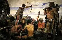 En sociología política y antropología, se atribuye a Karl Marx y Friedrich Engels el concepto comunismo primitivo, como el estado original cazador-recolector de la especie humana del que surgió el comunismo temprano, una etapa de desarrollo de las formaciones económico-sociales con bajo nivel de las fuerzas productivas y caracterizado por la propiedad colectiva y la distribución igualitaria de los productos.[43] Para Marx, solo después de que la humanidad fue capaz de producir excedentes (y de que algunos miembros de la sociedad se apropiaron de ellos) con las divisiones del trabajo, se desarrolló la propiedad privada, el Estado y sociedades basadas en la explotación.[44]