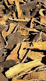 - Quitar - Después de la extracción de las planchas, se mantienen adheridos algunos fragmentos de corcho a la base del tronco. Para quitar posibles parásitos que queden en la cuña del alcornoque, el descorchador da algunos golpes con el ojo del hacha.
