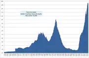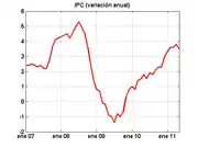 La inflación interanual alcanzó un máximo histórico[cita requerida] del 5,3 % en julio de 2008 debido al incremento del precio del petróleo[21] y, tras ocho meses de caídas, entró por primera vez desde que se tienen registros en una deflación que se prolongó durante otros ocho meses (de marzo a octubre de 2009), llegando a marcar un pico negativo del –1,4 %.[22]
