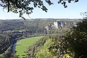 Hasta la última Edad de Hielo, el Rin no comenzaba más que en el extremo suroeste de la Selva Negra. El agua de los Alpes, que hoy en día desemboca en el Rin, era transportada en ese momento y hasta la glaciación de Riss hacia el este por el Danubio original. El curso de este pasaba más al norte a lo largo de una línea Wellheim–Dollnstein–Eichstätt–Beilngries–Riedenburg. Las gargantas de la actual Jura de Suabia, ahora desprovistas de curso de agua, son restos del lecho de ese antiguo río que era significativamente mayor que el Danubio de hoy. Después de que una parte de la llanura del Rin superior se formara por la erosión, la mayor parte del agua que fluía desde los Alpes cambió de dirección para unirse al Rin.[22]