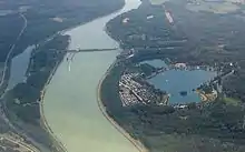 También se debe subrayar el papel del río durante la guerra de la Quinta Coalición en 1809, que vio a Austria oponerse al emperador Napoleón I. Después de sus derrotas en abril, el ejército austríaco retrocedió detrás del Danubio y obligó a Napoleón a reunirse con él en el otro lado, si quería obtener la paz con Austria,[17] lo que terminaría en las batallas de Essling y de Wagram[18]