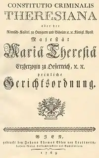 En 1532, Carlos V sancionó la Constitutio Criminalis Carolina u Ordenanza de Justicia Penal que, si bien no era obligatoria para los señores feudales en sus territorios, igualmente sustentó el Derecho penal común alemán.[cita requerida]