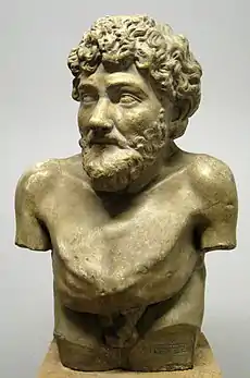 ![]() Molde de yeso de una estatua helenística que se cree que representa a Esopo; original en la Colección de Arte de la Villa Albani, Roma. | ||
