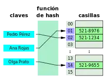 - Un vector asociativo (también llamado diccionario o mapa) es una variante más flexible que una matriz, en la que se puede añadir y eliminar libremente pares nombre-valor. Una tabla de hash es una implementación usual de un arreglo asociativo.