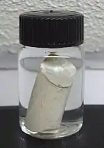 Desde la perspectiva de las aplicaciones y la literatura química, la forma más importante de fósforo elemental es el fósforo blanco, a menudo abreviado como WP. Es un sólido ceroso blando que consta de P