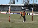 - Gol: 6 puntos. Para anotarlo el jugador debe conseguir, mediante un disparo con el pie, que el balón pase entre los postes centrales, sin importar a que altura lo haga. Para que se otorguen los seis puntos, el balón no puede ser tocado por ningún otro jugador durante su trayectoria. Aunque lo normal es que la pelota no toque el suelo después del lanzamiento, si llega a botar y cruza los postes centrales no afecta a la puntuación.
