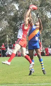 Cada jugador está marcado por un oponente, que tendrá que atrapar el balón o evitar que el rival lo agarre. Si un jugador del mismo equipo pasa a otro la pelota con una patada, el balón alcanza una trayectoria alta y es atrapado en el aire por ese otro jugador, se considera un mark y el árbitro concede un tiro libre. Esto significa que el juego se detiene (no así el tiempo) mientras el atacante se dispone a lanzar desde detrás del lugar donde logró atrapar la pelota, sin más interferencias que un defensor a su lado. El specky, o spectacular mark, es la acción más espectacular del juego, ya que los jugadores saltan a atrapar la bola y es donde se suelen producir las acciones más llamativas. Para saltar a por el balón, el futbolista puede apoyarse en otro jugador.