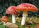 ![]() En el sentido de las agujas del reloj: Amanita muscaria, un basidiomiceto; Sarcoscypha coccinea, un ascomiceto; pan cubierto de moho; un quitridio; un Aspergillus conidióforo. | ||