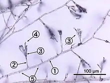 - Harris SD. (2008). «Branching of fungal hyphae: regulation, mechanisms and comparison with other branching systems». Mycologia 50 (6): 823-32. PMID 19202837. doi:10.3852/08-177.