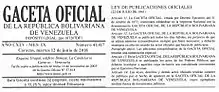 | Gaceta Oficial de la República Bolivariana de Venezuela | ||