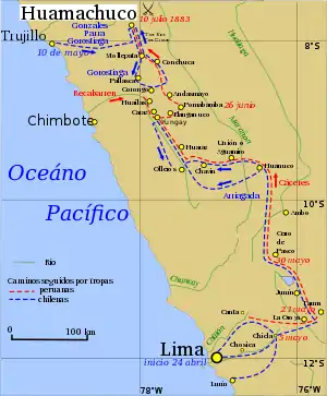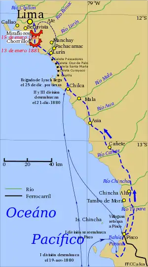 - Francisco Machuca (1929), "Las Cuatro Campañas de la Guerra del Pacífico:La campaña de Lima"