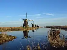 Holanda está protegida del mar por una larga línea de dunas en la costa. La mayor parte del área tras las dunas está conformado por pólderes, superficies terrestres ganadas al mar y que se encuentran muy por debajo del nivel de este. En la actualidad, el punto más bajo de Holanda es un pólder, el Zuidplaspolder, situado a unos 6,75 metros bajo el nivel del mar, cerca de Róterdam. El drenaje continuo es necesario para mantener a Holanda a salvo de inundaciones. En siglos anteriores, los molinos de viento se utilizaron para este cometido. El paisaje estaba —y en algunas partes, sigue estando— repleto de estas estructuras de madera, que se han convertido en un símbolo de Holanda.