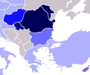 ![]() Mapa de territorios rumanohablantes.