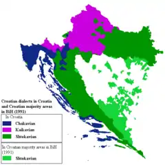 ![]() Mapa moderno de los dialectos en Croacia y áreas de mayoría croata en Bosnia y Hercegovina. |