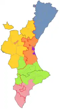 - Valencia y Área Metropolitana: municipios de la comarca de la Huerta de Valencia que conforma las comarcas actuales de Valencia, Huerta Norte, Huerta Oeste y Huerta Sur.