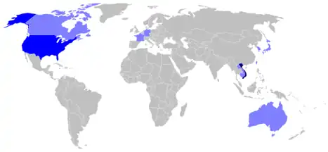 De acuerdo con la publicación The Ethnologue, además de en Vietnam, el vietnamita se habla en los siguientes países: