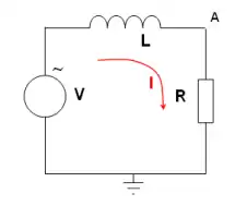La tensión entre las extremidades de la inductancia es