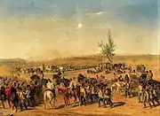 El archiduque Carlos de Austria ejerció como jefe del Consejo de Guerra y comandante en jefe del Ejército austriaco; dotado de las competencias ampliadas, reformó el ejército austriaco en la preparación para otra guerra. Johann Philipp von Stadion, el ministro de Relaciones Exteriores, personalmente odiaba a Napoleón, debido a la experiencia personal de la confiscación de sus posesiones en Francia. Además, la tercera esposa de Francisco II, María Luisa de Austria-Este, estuvo de acuerdo con los esfuerzos de iniciar una nueva guerra. La derrota del ejército francés en la batalla de Bailén en España el 27 de julio de 1808 desencadenó la guerra. El 9 de abril de 1809, un ejército austriaco de 170 000 hombres atacó Baviera.
