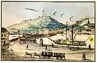 Para la marina mercante en general y para la ciudad de Trieste en particular, la colocación de la primera piedra para la Südbahnhof (estación de ferrocarril de la línea sur) el 18 de marzo de 1850 por el emperador Francisco José I fue importante para la línea ferroviaria, que desde el 12 de julio de 1857 en adelante, el tren podía viajar continuamente desde Viena a Trieste.[26]