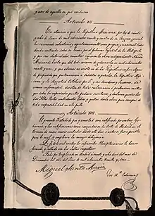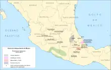 La independencia de México fue la consecuencia de un proceso político y social resuelto con las armas, que puso fin al dominio español en la mayor parte de los territorios de Nueva España y dio inicio al Primer Imperio Mexicano. La pérdida de esta posesión tuvo una importancia decisiva para la economía del Imperio Español, ya que los ingresos mexicanos representaban el ochenta por ciento del total de los caudales americanos al final del periodo colonial.[2] La guerra por la independencia mexicana inició el día 16 de septiembre de 1810, hasta la entrada del Ejército Trigarante a la Ciudad de México, el día 27 de septiembre de 1821.