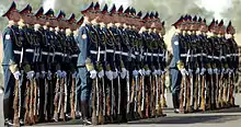 La fuerza aérea de Kazajistán se compone sobre todo de aviones de la era soviética, entre ellos 41 MiG-29, 44 MiG-31, 37 Su-24 y 60 Su-27. Una pequeña fuerza naval también se mantiene en el mar Caspio. Kazajistán envió cuarenta y nueve ingenieros militares a Irak para ayudar en la posguerra a la misión de Estados Unidos en ese país.