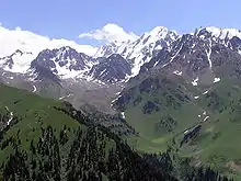 Al sur del Umbral Kazajo se encuentra la Estepa del Hambre (Betpak-Dala en kazajo). Aún más al sur de esta estepa y del lago Balchash se encuentra un cinturón de desiertos, Mujunkum, y el históricamente fértil País de los Siete Ríos. En el mismo sur de Kazajistán, en la frontera con China y Kirguistán, se encuentran altas montañas como el Jungar Alatau, el Qaratau y, sobre todo, el Tian Shan (montañas celestiales en chino); esta última es una de las cordilleras más altas del planeta. Las montañas, cubiertas en parte por bosques y sobre todo por glaciares, alcanzan los 7.439 m en el vecino Kirguistán. La montaña más alta de Kazajistán es el Khan Tengri (7010 metros), situado en el extremo sureste.[39]