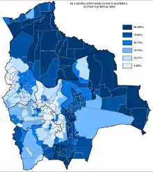 En Bolivia se habla el idioma castellano (en sus variantes bolivianas), aymara, quechua, y variedad de lenguas indígenas de menor uso. Durante el Censo 2001, el 47 % de la población declaró hablar alguna lengua indígena, mientras que el 36 % la tenía como lengua materna. El 33,2% de la población era bilingüe, en contraste del 11,6 % de monolingües indígenas y el 49,8 % de hispanohablantes monolingües. También se utiliza el inglés en ciertos contextos y el portugués por ser vecinos de Brasil.