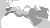 En la batalla de Yarmuk (636), los ejércitos musulmanes conducidos por Khalid ibn al-Walid consiguieron una victoria total sobre los bizantinos, dejando libre el camino para la conquista de Siria y Palestina (634-640) y Egipto (642). Después de derrotar al Imperio sasánida en la batalla de al-Qadisiyya (637), los musulmanes invadieron el imperio, incluyendo Irak. Cinco años después, tras una rebelión durante la batalla de Nahavand, la conquista era total, incluyendo las tierras de Armenia, Transoxiana y el Turquestán chino. La plaga de Justiniano, un brote de peste bubónica que devastó Persia y Roma, pudo haber contribuido al rápido avance musulmán.[20]