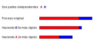 Por ejemplo, si en un programa de ordenador el tiempo de ejecución de un cierto algoritmo supone un 30% del tiempo de ejecución total del programa, y conseguimos hacer que este algoritmo se ejecute en la mitad de tiempo se tendrá:
