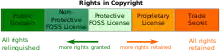 Se puede crear una obra derivada sin que esta tenga obligación de protección alguna. Muchas licencias pertenecen a esta clase, entre otras: