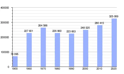 | Gráfica de evolución demográfica de Malmö entre 1900 y 2020 |