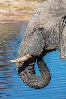 - Entre los elefantes de trabajo que utilizan sus colmillos para transportar troncos, existe una longitud óptima para sus colmillos. Antiguamente, en la India, los colmillos se cortaban a esta longitud (y a menudo el extremo del colmillo acortado se ataba con cobre). Esto liberaba periódicamente piezas de marfil para el comercio de tallas.