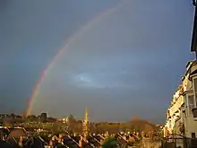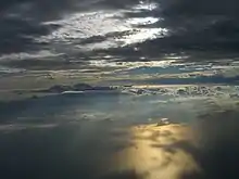 El tiempo atmosférico es un conjunto de todos los fenómenos que ocurren en un área atmosférica determinada en un momento dado.[25] La mayoría de los fenómenos meteorológicos ocurren en la troposfera,[26][27] justo debajo de la estratosfera. El clima se refiere, en general, a la temperatura diaria y la actividad de precipitación, mientras que el clima es el término para las condiciones atmosféricas promedio durante períodos de tiempo más largos.[28] Cuando se usa sin calificación, se entiende por «clima» el clima de la Tierra.