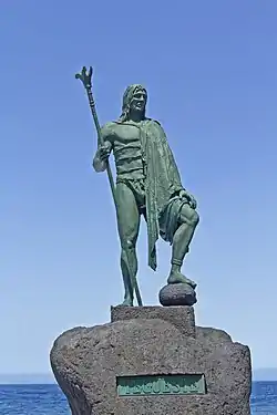 Estatua de Tegueste en la plaza de la Patrona de Canarias, Candelaria.