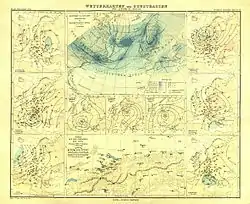 El primero en definir de modo correcto la circulación atmosférica global fue George Hadley, con un estudio sobre los vientos alisios efectuado en 1735. En los inicios, ésta fue una comprensión parcial de cómo la rotación terrestre influye en la cinemática de los flujos de aire. Más tarde (en el siglo XIX), fue comprendida la plena extensión de la interacción a larga escala tras la fuerza del gradiente de presión y la deflexión causada por el efecto de Coriolis, que en forma conjunta dan origen al complejo movimiento tridimensional del viento. La fuerza de deflexión debe su nombre Gaspard-Gustave Coriolis, quien en una publicación de 1835 describió los resultados de un estudio sobre la energía producida por la máquina con partes en rotación, como la ruta del agua de los molinos. En 1856, William Ferrel hipotetizó la existencia de una «célula de circulación» en latitudes medias, en las cuales el aire se deflecta por la fuerza de Coriolis creando los principales vientos de los oestes. La observación sinóptica del tiempo atmosférico era aún compleja por la dificultad de clasificar ciertas características climáticas como las nubes y los vientos. Este problema fue resuelto cuando Luke Howard y Francis Beaufort introdujeron un sistema de clasificación de las nubes (1802) y de la fuerza del viento (1806), respectivamente. El verdadero punto de cambio fue la invención del telégrafo en 1843, lo cual permitió comenzar a intercambiar información sobre el tiempo meteorológico a velocidades inigualables.
