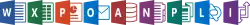 | Archivo:Microsoft Office 2013-2019 logos lineup.svg y Microsoft Office 2013-2019 start screen tiles lineup.svg | ||