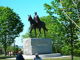 La Corona conserva un lugar predominante entre las Fuerzas Armadas de Canadá. La reina ocupa el puesto de Comandante en Jefe de las Fuerzas según el artículo 15 de la Ley constitucional de 1867.[33] Sin embargo, el gobernador general de Canadá, en nombre del soberano, puede ejercer esta función conforme a la patente real de 1947 del rey Jorge VI. El soberano también ocupa el puesto de "Comisario honorario" de la Real Policía Montada del Canadá.[34] El símbolo indefectible que el soberano ocupa una posición y un papel importante en el seno de las Fuerzas Armadas se refleja en el hecho que todos los buques militares de Canadá llevan el prefijo "Buque canadiense de Su Majestad" o "His Majesty's Canadian Ship"(HMCS)[35] y todos los miembros de las Fuerzas canadienses prestan juramento al Rey así como a su sucesor.[36] Varios miembros de la Familia Real ostentan el título de "Coronel en Jefe" de algunos regimientos canadienses. Así, muchos de ellos presidieron ceremonias militares, incluida la revista de las tropas.[37] Cada vez que un miembro de la Familia Real está de paso en la ciudad de Ottawa, va a depositar una corona al monumento nacional de la guerra, donde se encuentra la Tumba del soldado desconocido.